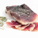 Филе сырокопченое, продукт полностью готов к употреблению. Великолепно как холодная закуска, нарезанная тонкими ломтиками, отлично сочетается и с легким летним салатом, и с бокалом красного вина.