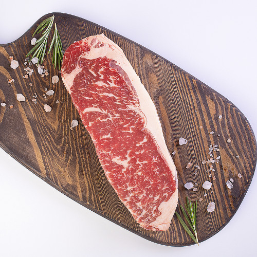 Этот стейк нарезается из премиального отруба Стриплойн, породы Black Angus, кукурузного откорма.