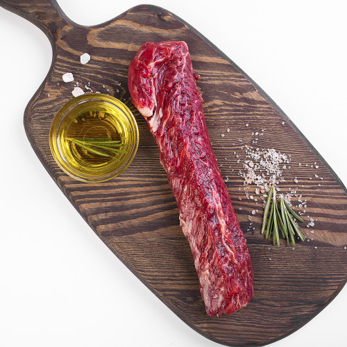Наш любимый «стейк мясника», он сочетает нежность филе-миньона и сочность скёрта. 200-дней кукурузного откорма.